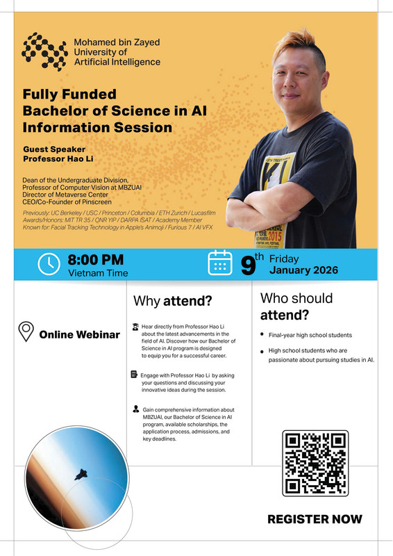 Hội Thảo Online về Chương Trình Cử Nhân AI tại MBZUAI cùng với Giáo Sư Hao Li |