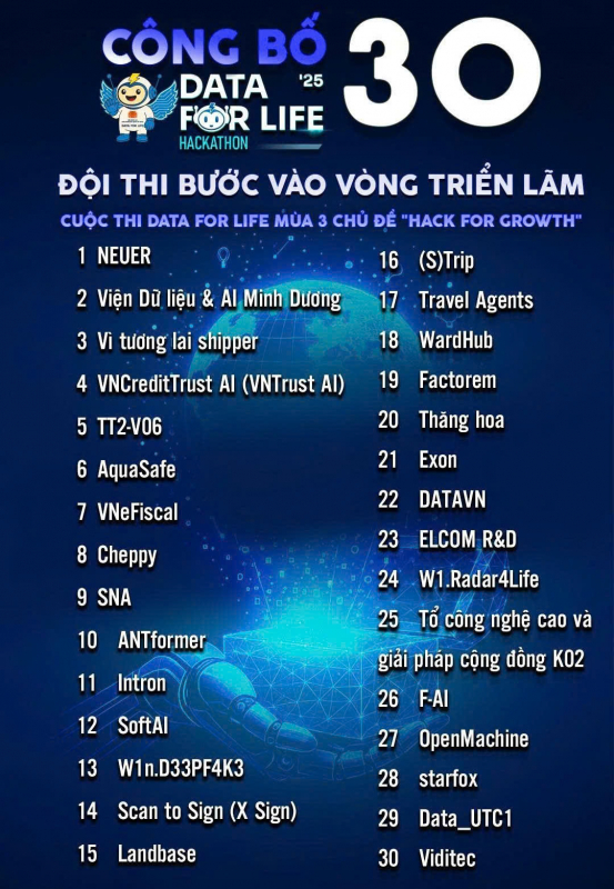 Sau hơn một tháng phát động, cuộc thi “Data for Life 2025” đã chính thức khép lại vòng hồ sơ với hơn 2.600 đội thi, 9.100 thí sinh đến từ các trường đại học, viện nghiên cứu, cơ quan và doanh nghiệp trên toàn quốc; đồng thời, cuộc thi còn lan toả ra các quốc gia trên thế giới với 20 đội thi nước ngoài (Australia, Singapore, Hàn Quốc, Nhật Bản, Đức, Campuchia, Indonesia...).